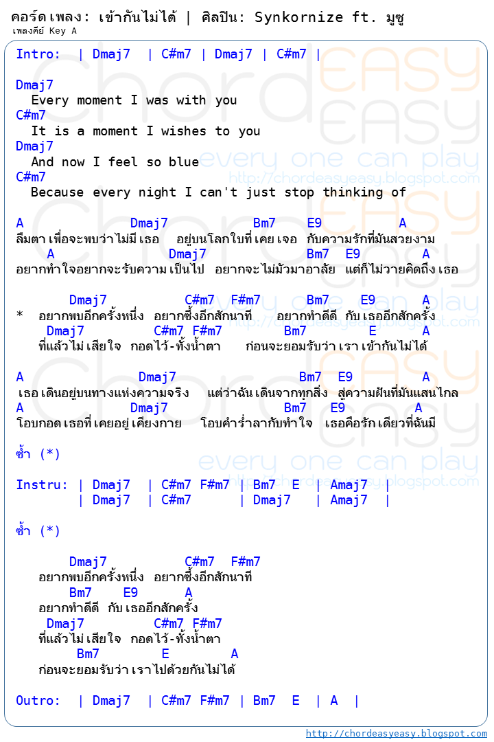 คอร์ดเพลง: เข้ากันไม่ได้ | ศิลปิน: Synkornize ft. มูซู