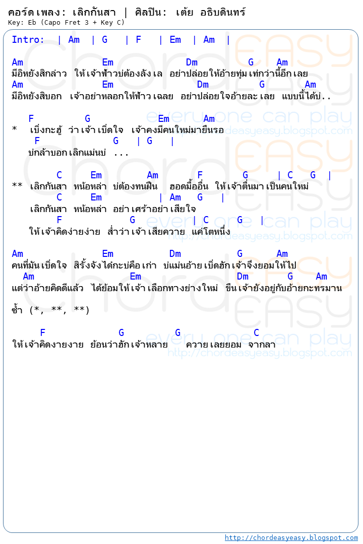 คอร์ดเพลง: เลิกกันสา | ศิลปิน: เต้ย อธิบดินทร์