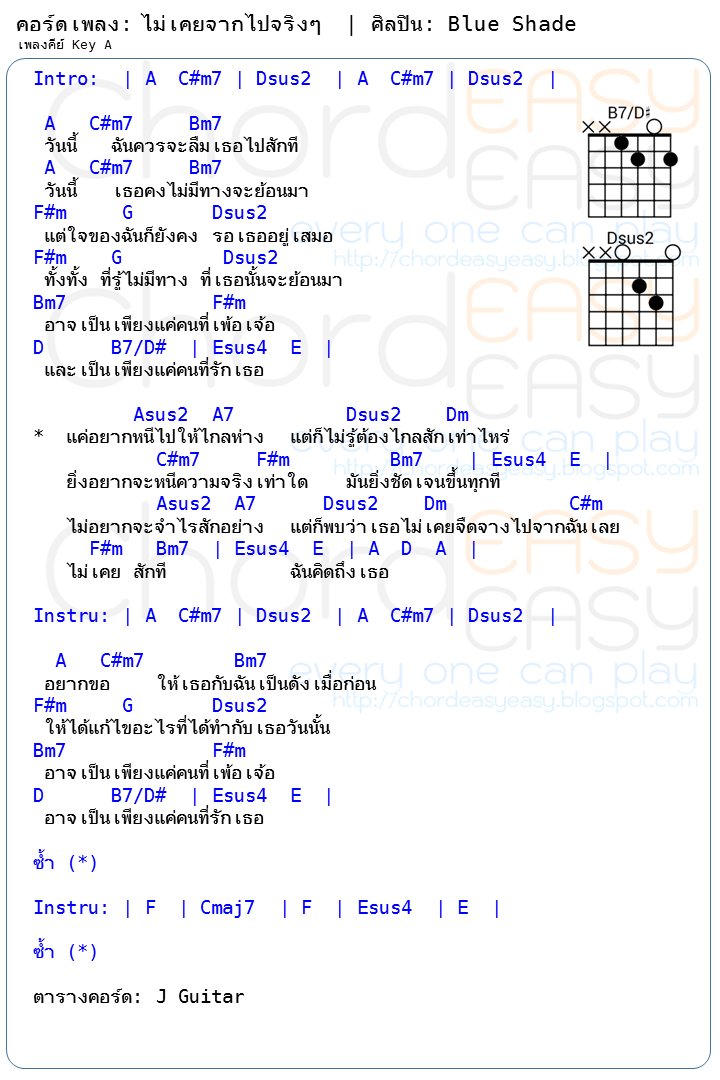 คอร์ดเพลง: ไม่เคยจากไปจริงๆ | ศิลปิน: Blue Shade | คอร์ดง่าย Key G | คอร์ด ไม่เคยจากไปจริงๆ | | คอร์ดเพลง ไม่เคยจากไปจริงๆ | คอร์ดกีตาร์ | Ukulele | เนื้อร้อง | เนื้อเพลง ไม่เคยจากไปจริงๆ | Blue Shade