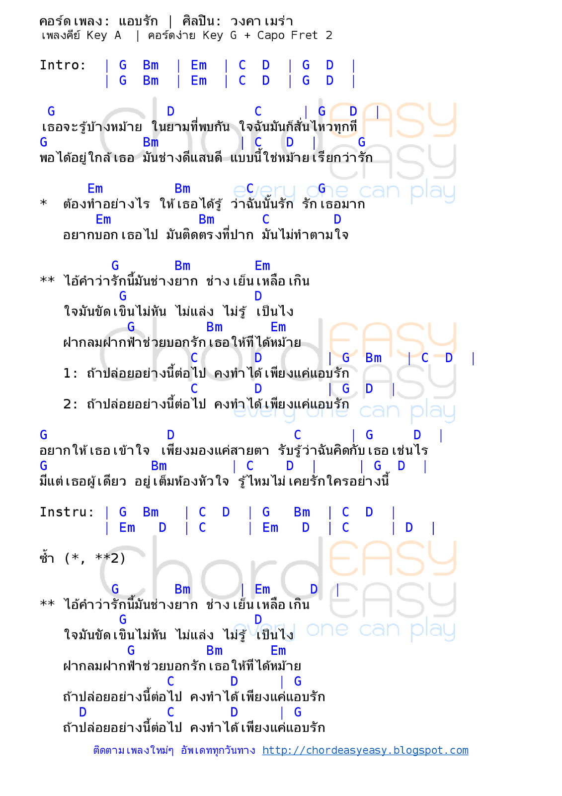 ติดตามเพลงใหม่ๆ อัพเดททุกวันทาง fb.com/chordeasyeasy