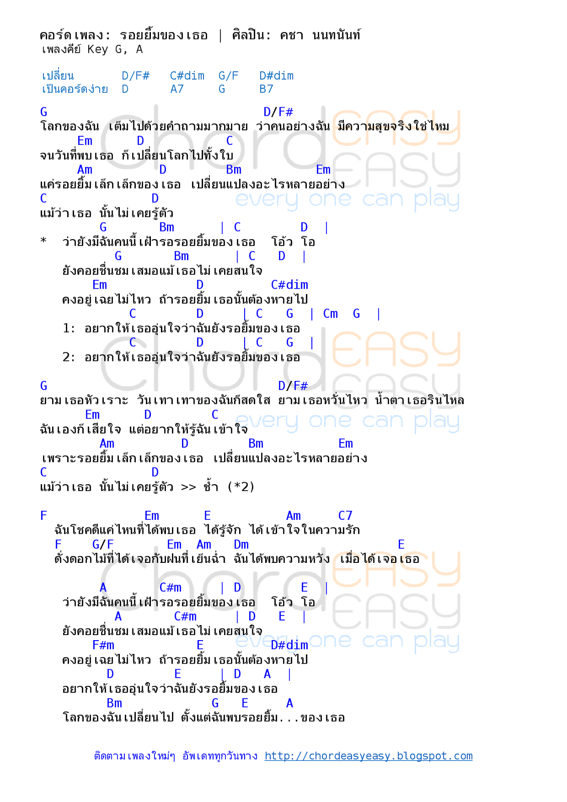 คอร์ดเพลง: รอยยิ้มของเธอ | ศิลปิน: คชา นนทนันท์ | Ost. U-PRINCE Series