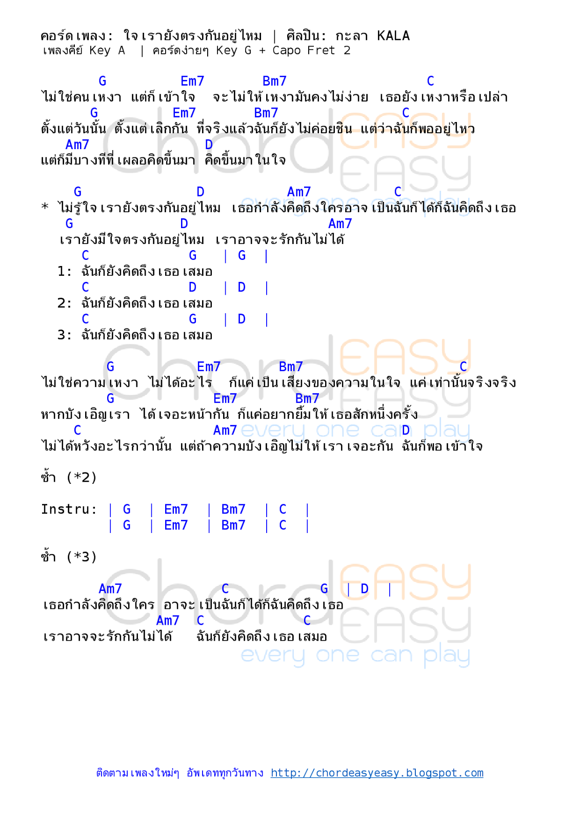 คอร์ดเพลง: ใจเรายังตรงกันอยู่ไหม | ศิลปิน: กะลา KALA