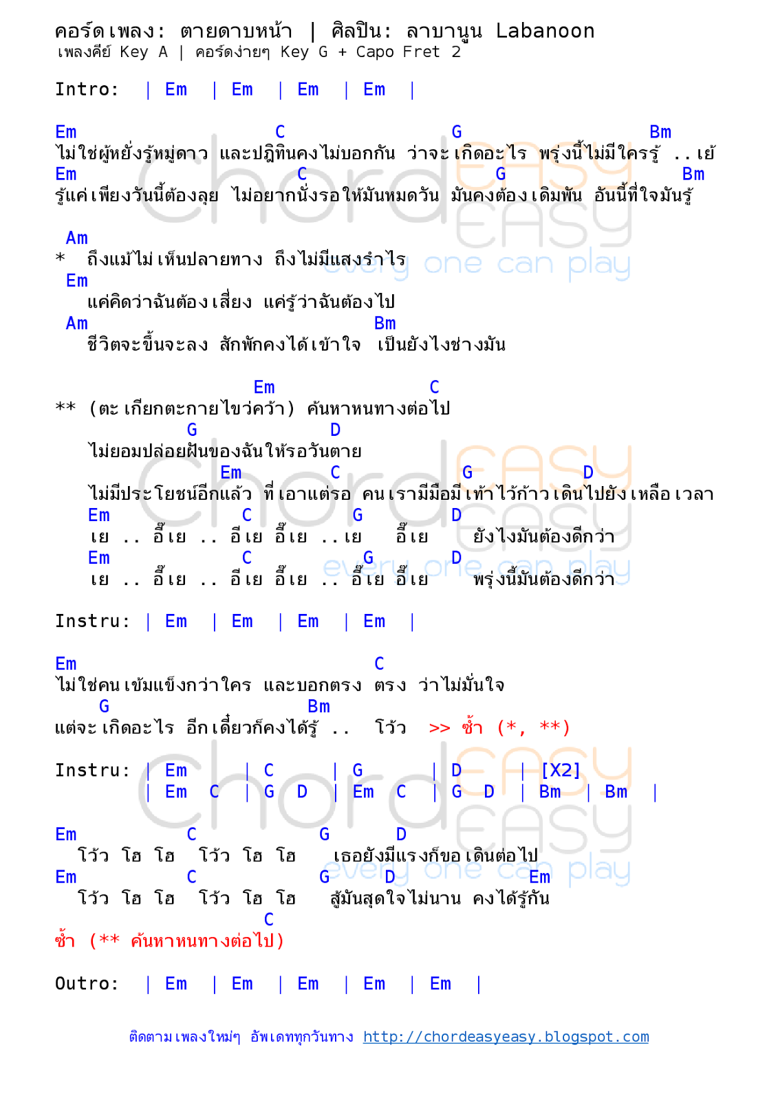 คอร์ดเพลง: ตายดาบหน้า | ศิลปิน: ลาบานูน Labanoon | คอร์ดง่ายๆ Key G |