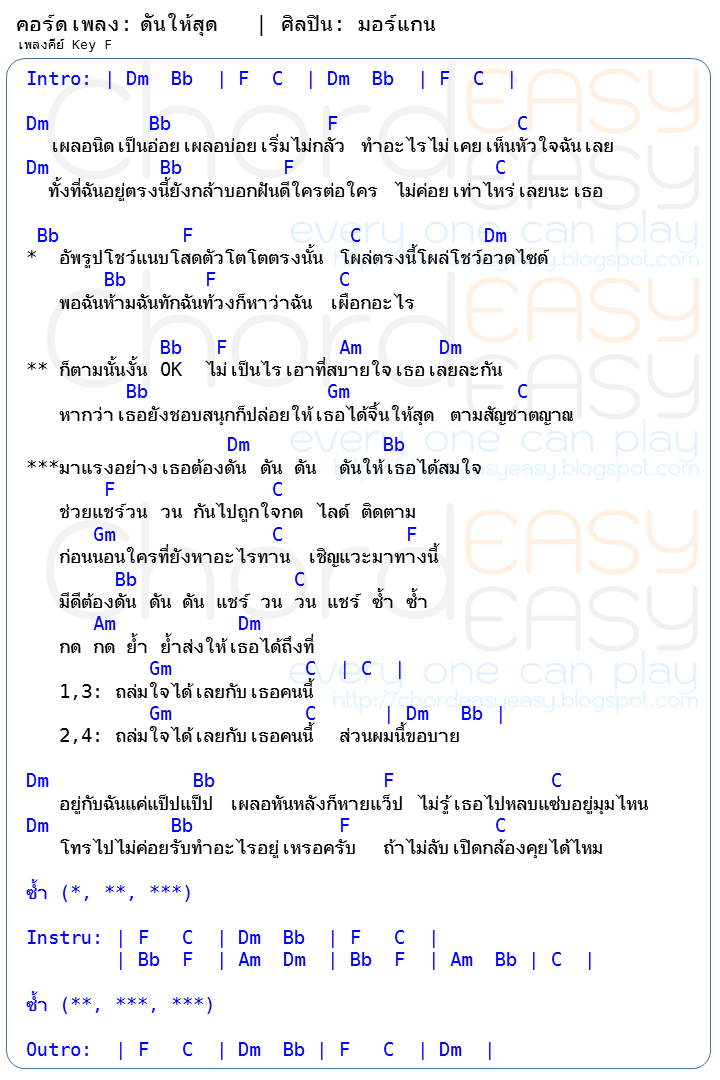 คอร์ดเพลง: ดันให้สุด | ศิลปิน: มอร์แกน | คอร์ดง่าย | คอร์ด ดันให้สุด | มอร์แกน | คอร์ดเพลง ดันให้สุด | คอร์ดกีตาร์ | Ukulele | เนื้อร้อง | เนื้อเพลง ดันให้สุด | มอร์แกน