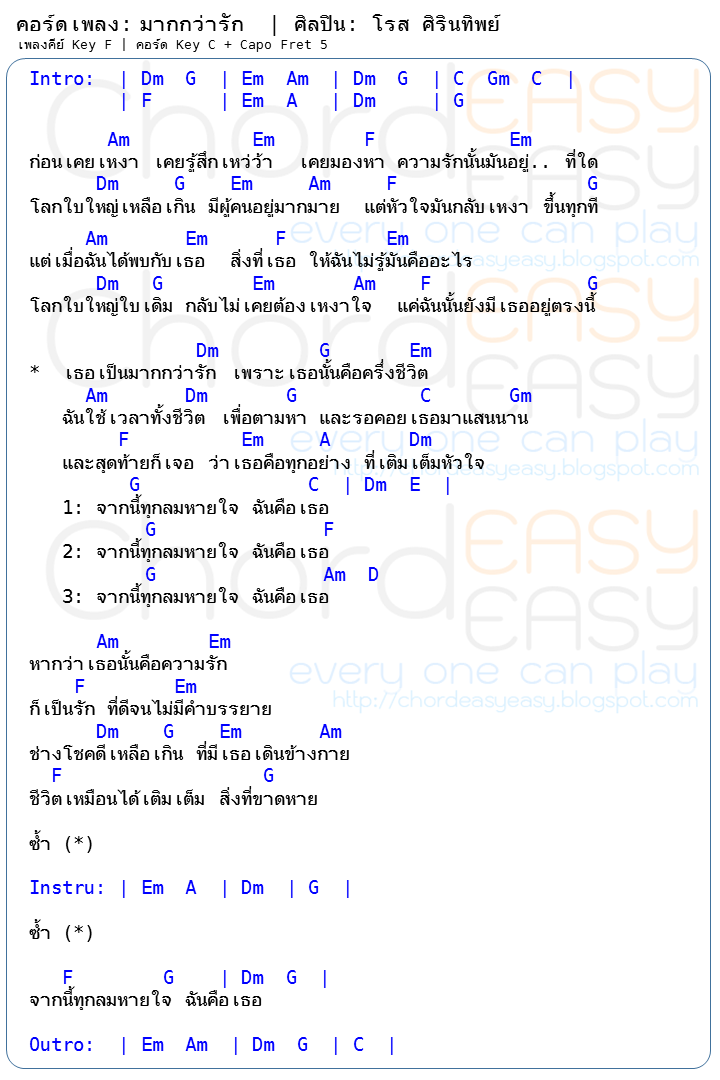 คอร์ดเพลง: มากกว่ารัก | ศิลปิน: โรส ศิรินทิพย์