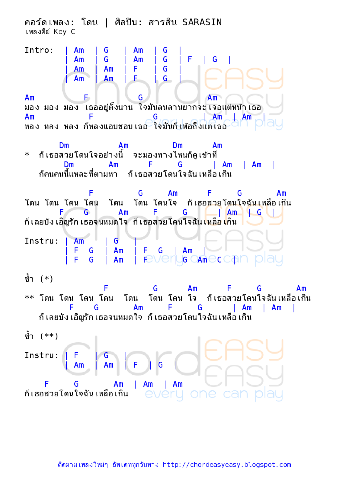 คอร์ดเพลง: โดน | ศิลปิน: สารสิน SARASIN | คอร์ดง่าย Key C | คอร์ด โดน | | คอร์ดเพลง โดน | คอร์ดกีตาร์ | Ukulele | เนื้อร้อง | เนื้อเพลง โดน | สารสิน SARASIN