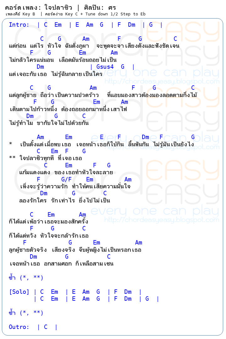 ![คอร์ด + TAB ใจปลาซิว - ศร คอร์ด + TAB [Intro & Solo] ใจปลาซิว | ศิลปิน: ศร | คอร์ด ใจปลาซิว | ศร | คอร์ดเพลง ใจปลาซิว | คอร์ดกีตาร์ | Ukulele | เนื้อร้อง | แถบ | Solo | เนื้อเพลง ใจปลาซิว | ศร](https://4.bp.blogspot.com/-xBJhjlY5xO4/V6lphhcCOeI/AAAAAAAAYUQ/h05_ON_T77gTUdRUl3MWi2i2np9uetbsQCLcB/s1600/%25E0%25B8%25A8%25E0%25B8%25A3%2B-%2B%25E0%25B9%2583%25E0%25B8%2588%25E0%25B8%259B%25E0%25B8%25A5%25E0%25B8%25B2%25E0%25B8%258B%25E0%25B8%25B4%25E0%25B8%25A7.png)