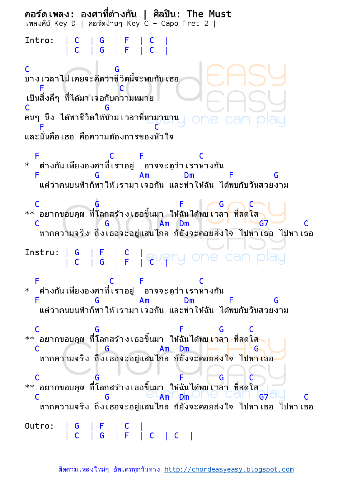 คอร์ดเพลง: องศาที่ต่างกัน | ศิลปิน: The Must | คอร์ดง่ายๆ Key C |