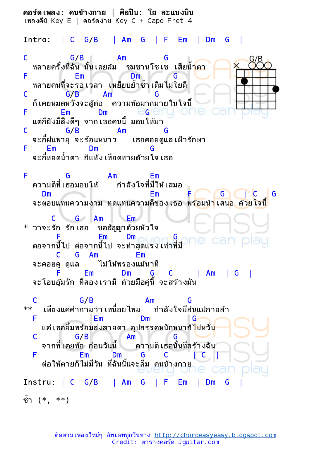 คอร์ดเพลง: คนข้างกาย | ศิลปิน: โย สะแบงบิน | คอร์ดง่ายๆ Key C |