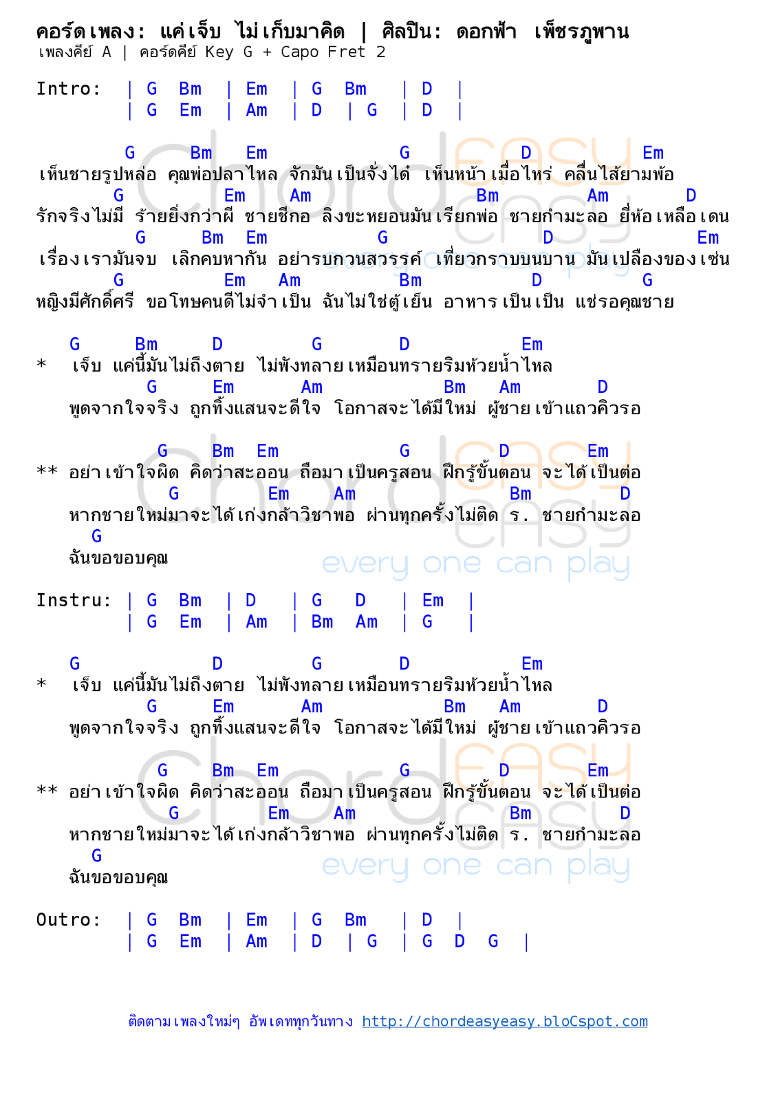 คอร์ดเพลง: แค่เจ็บ ไม่เก็บมาคิด | ศิลปิน: ดอกฟ้า เพ็ชรภูพาน | คอร์ดง่ายๆ Key G |