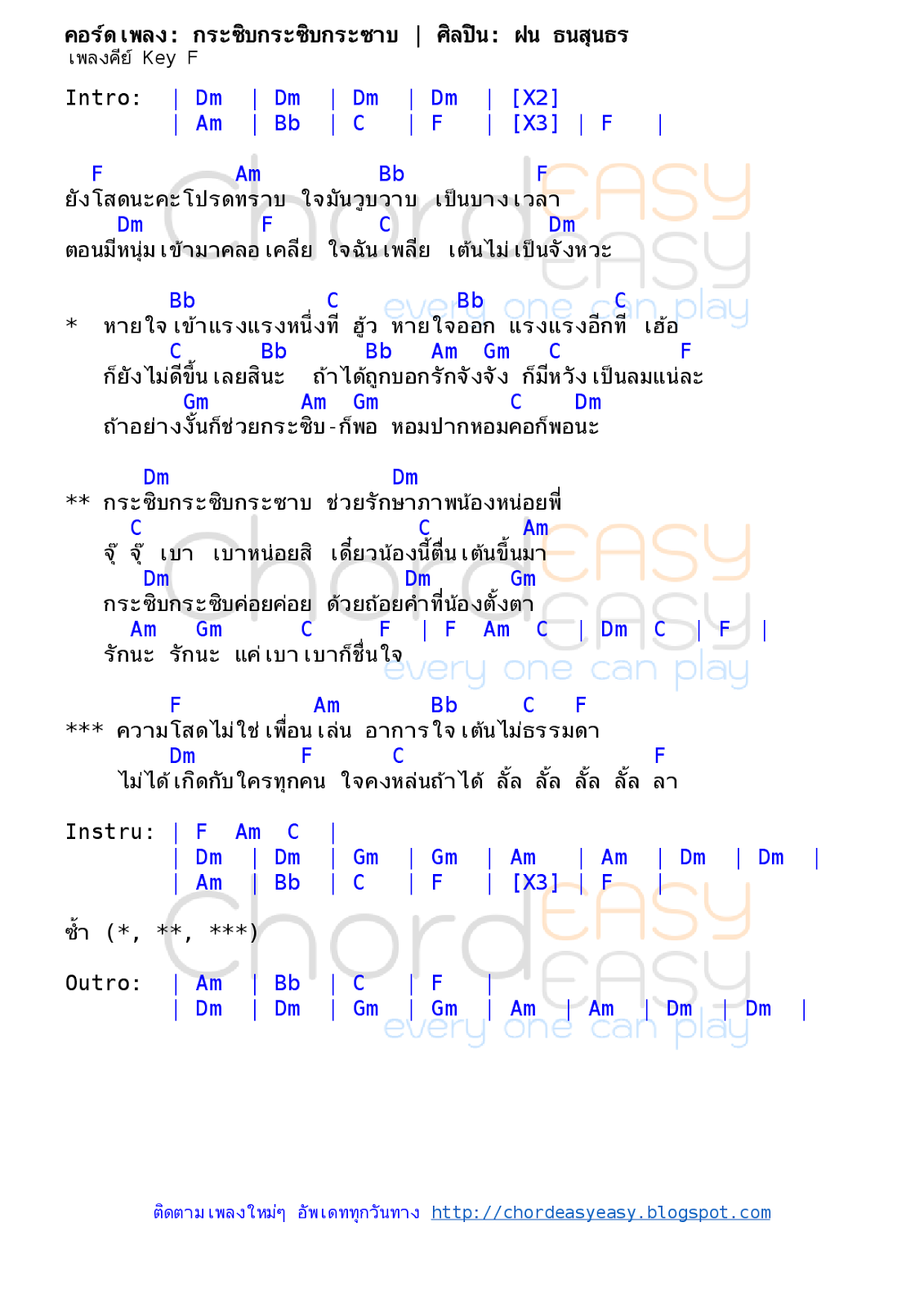 คอร์ดเพลง: กระซิบกระซิบกระซาบ | ศิลปิน: ฝน ธนสุนธร | คอร์ดง่ายๆ Key C |