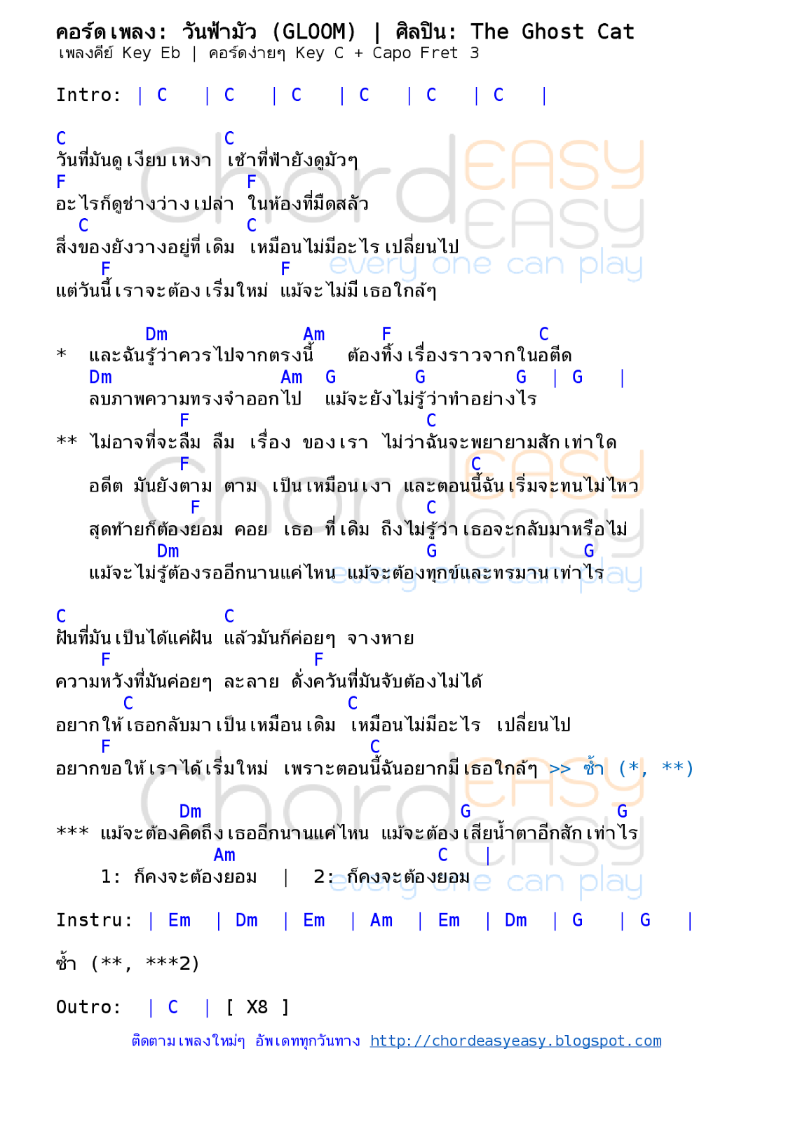 คอร์ดเพลง: วันฟ้ามัว (GLOOM) | ศิลปิน: The Ghost Cat | คอร์ดง่ายๆ Key C |