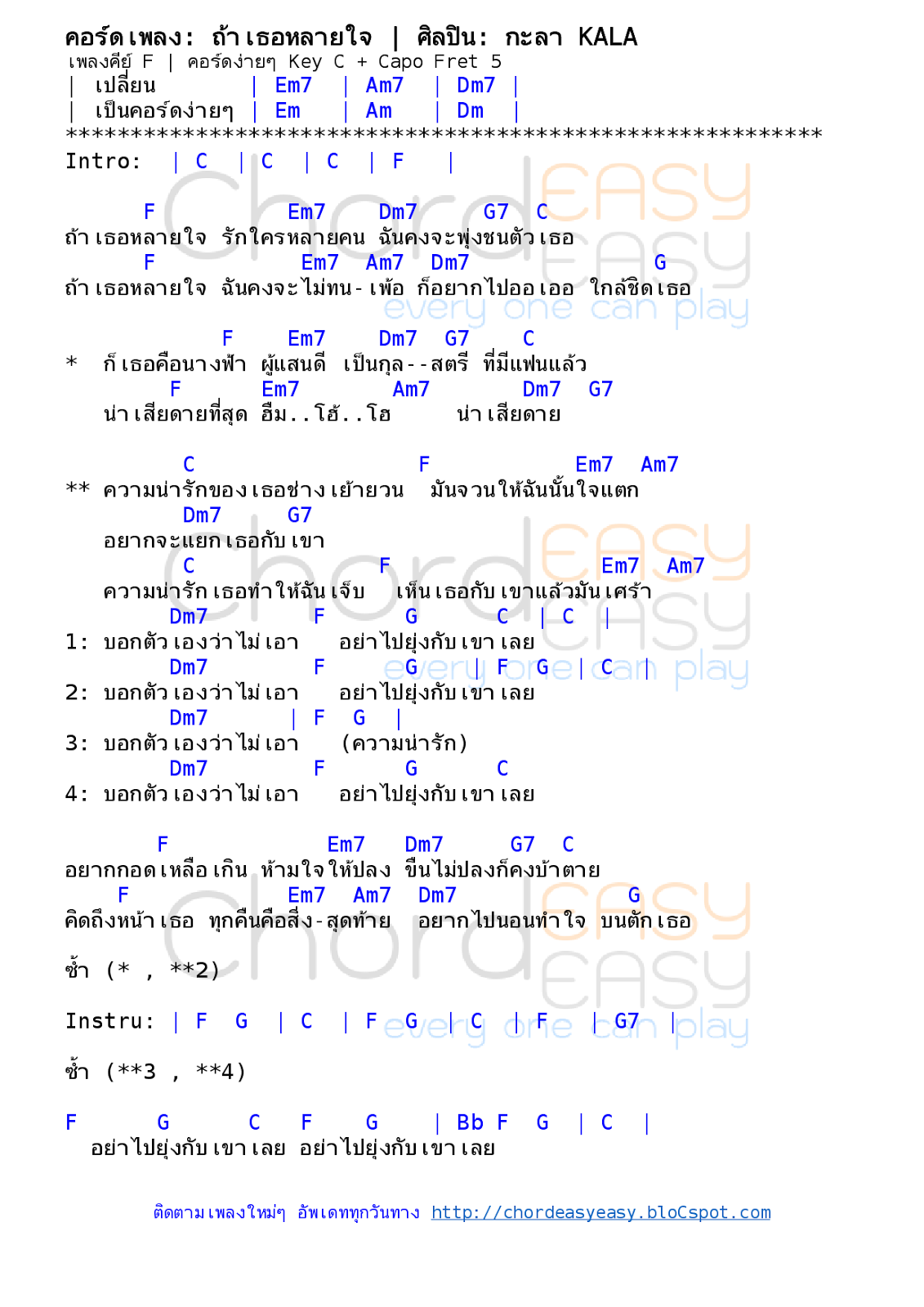 คอร์ดเพลง: ถ้าเธอหลายใจ | ศิลปิน: กะลา KALA | คอร์ดง่ายๆ Key C | คำร้อง : ฉันรักแม่ | ทำนอง : ฉันรักแม่ | เรียบเรียง : ดนัย ธงสินธุศักดิ์ | คอร์ดเพลง ถ้าเธอหลายใจ |