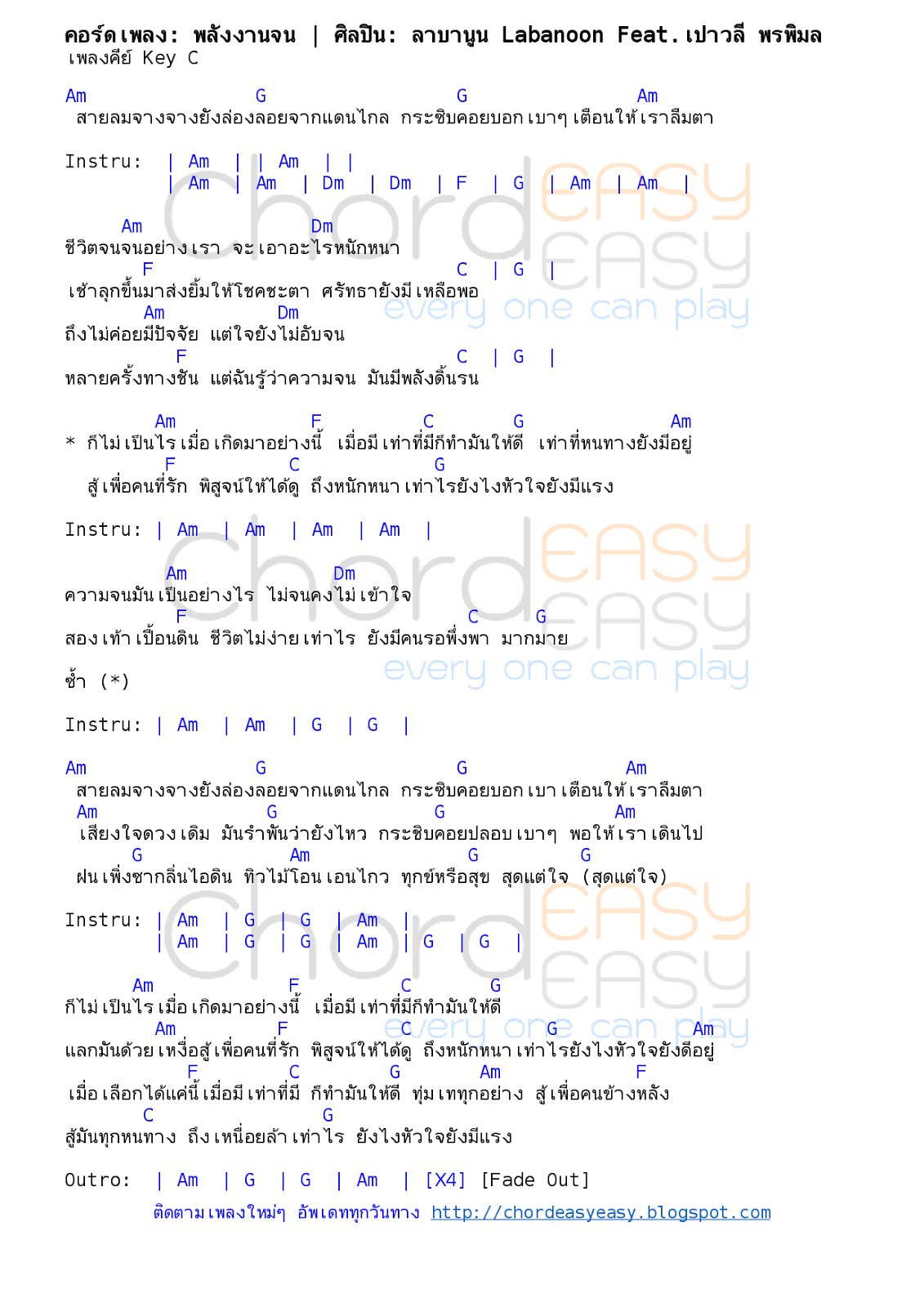 คอร์ดเพลง: พลังงานจน | ศิลปิน: ลาบานูน Labanoon Feat.เปาวลี พรพิมล | คอร์ดง่ายๆ Key C | คอร์ดเพลง พลังงานจน | คอร์ดกีตาร์ | Ukulele | เนื้อร้อง | เนื้อเพลง พลังงานจน | ลาบานูน Labanoon Feat.เปาวลี พรพิมล
