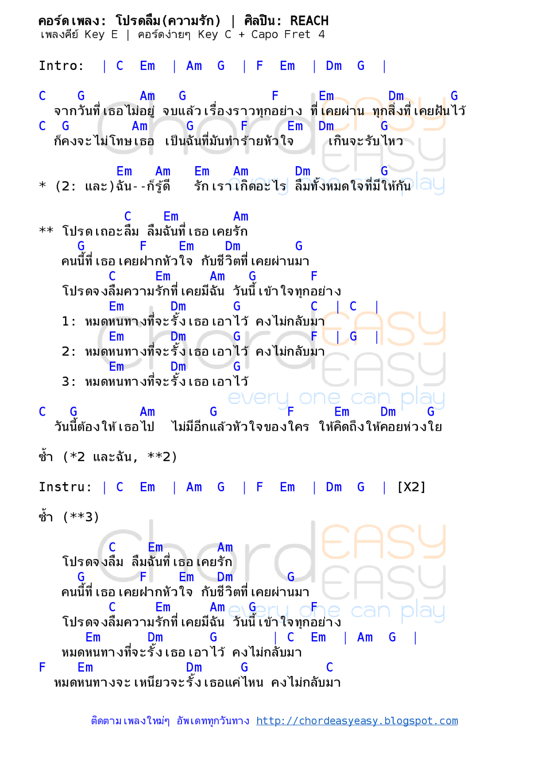 คอร์ดเพลง: โปรดลืม(ความรัก) | ศิลปิน: REACH | คอร์ดง่ายๆ Key C |