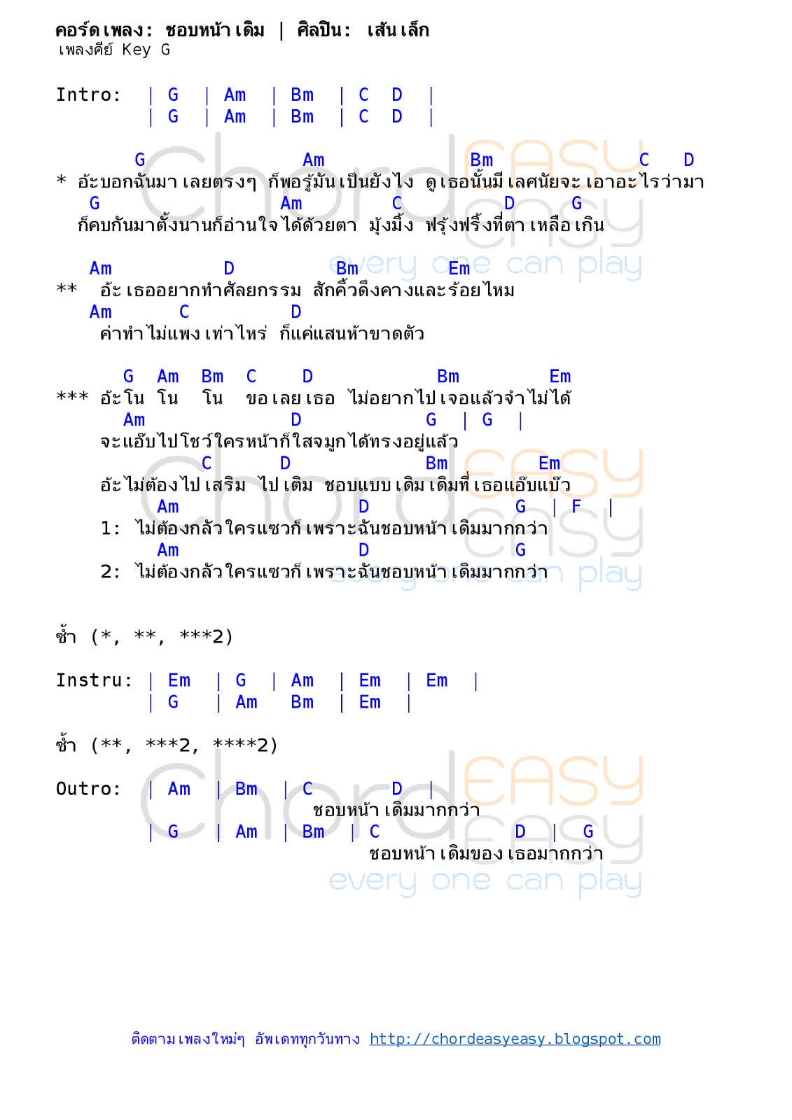 ติดตามเพลงใหม่ๆ อัพเดททุกวันทาง fb.com/chordeasyeasy