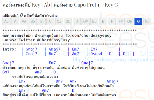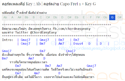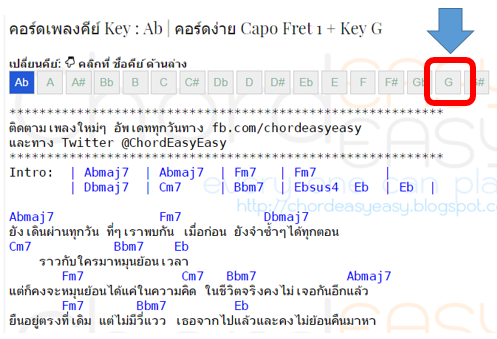 ตัวอย่างการเปลี่ยนคีย์เพลงในเว็บ Chord Easy Easy